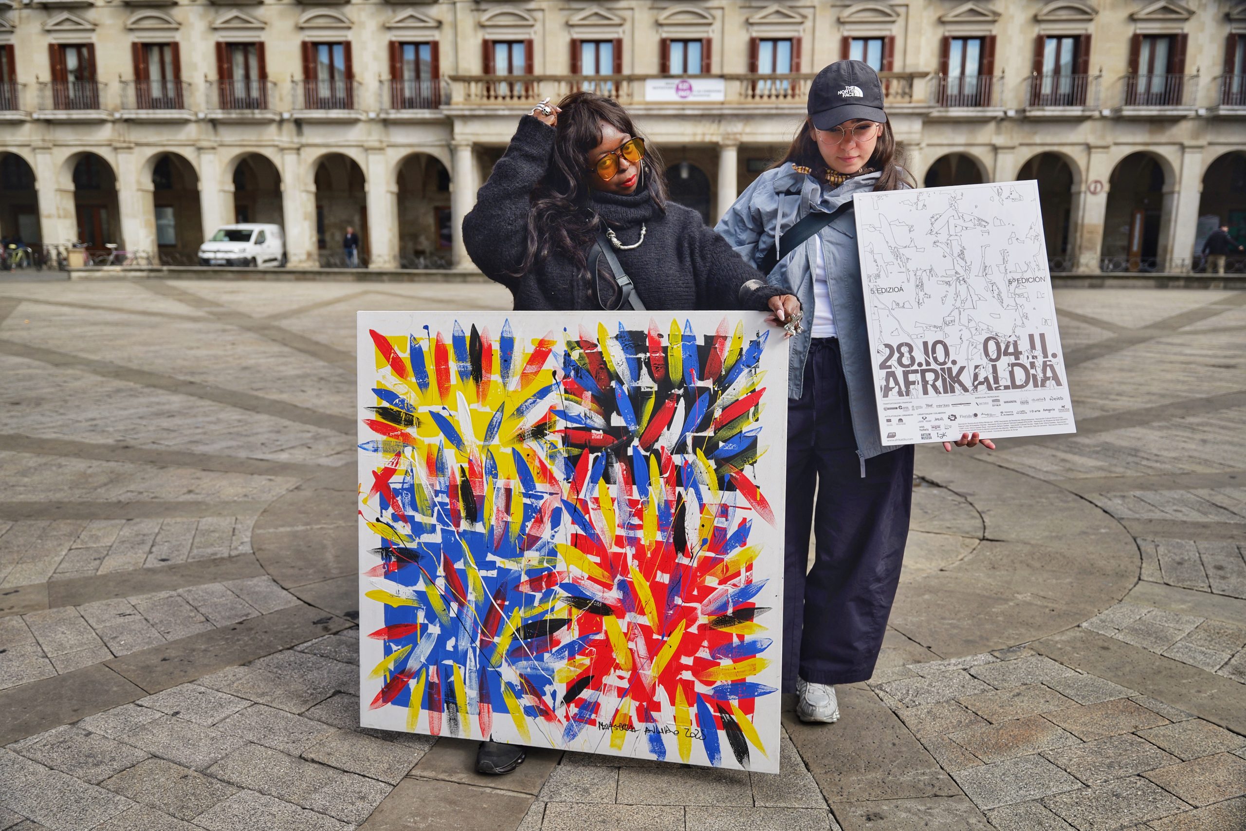 Que decir del cartel de este año de Afriakaldia, ¡guau!, Mora es una genial que se ha inspirado en mi obra Ancestralidad y creo que describe muy bien lo que yo quería transmitir con la obra, además creo que ese ha adaptado a los tiempos actuales. Es una obra que me representa mucho y es un acierto que la comunidad del festival interactúe con el cartel con los colores primarios.